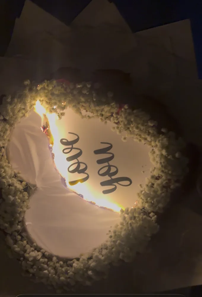 זר ורדים עם דף נשרף
