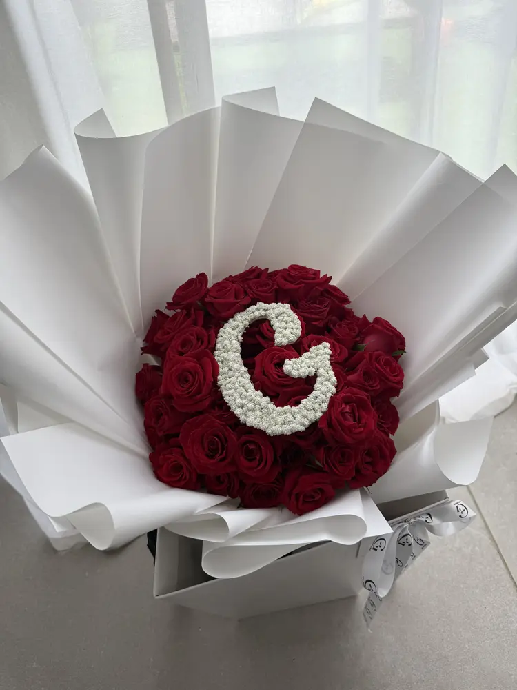 זר של 50 ורדים בתוספת אות אישית שזורה בגיפסנית ובעיטוף חגיגי במיוחד.עכשיו במבצע !