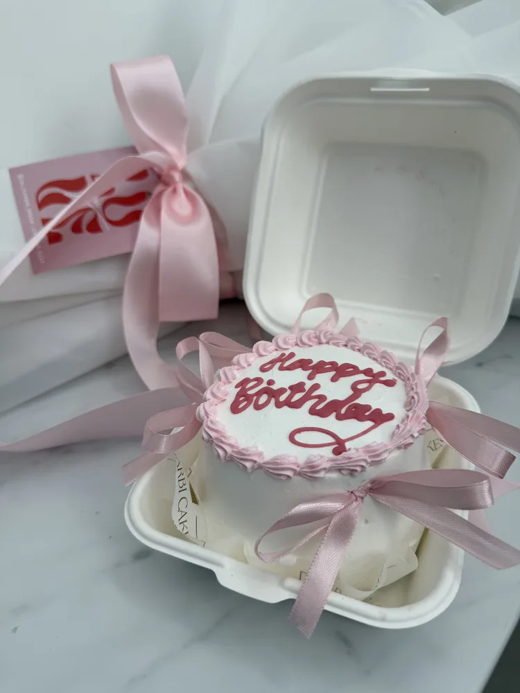 *העוגה בקוטר 10 ס"מ עם כיתוב HAPPY BIRTHDAY וסרטים