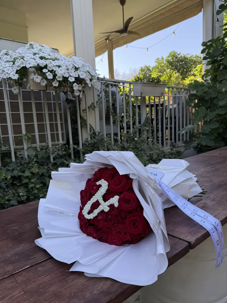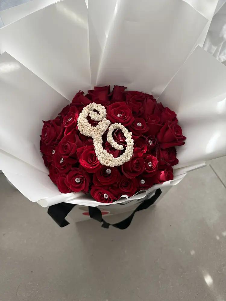 זר ורדים עם אות